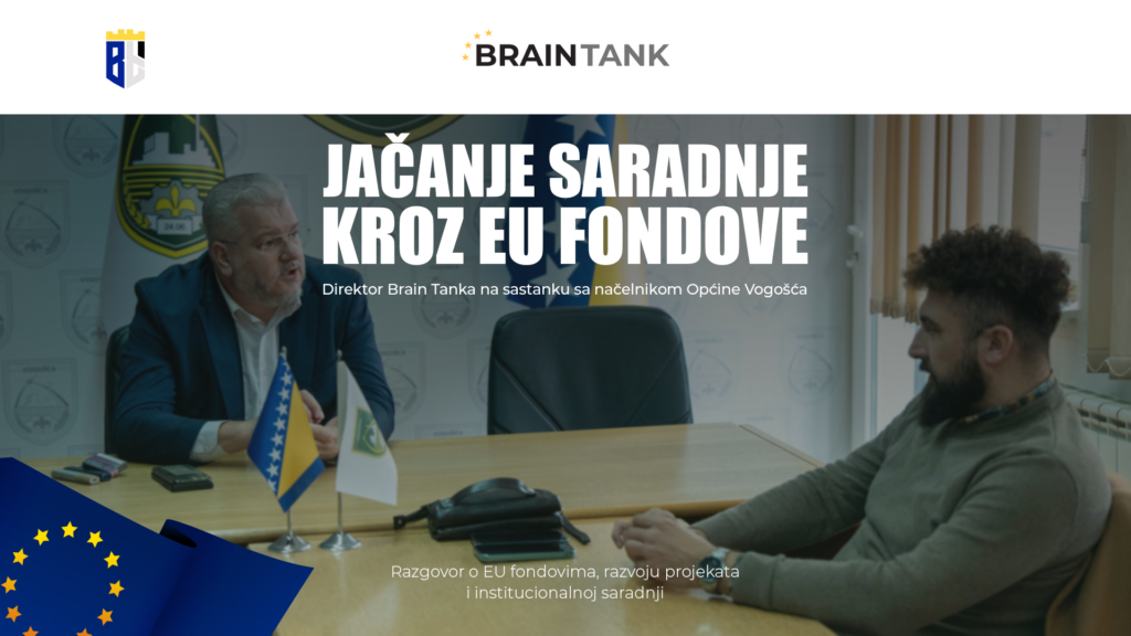 Direktor Brain Tank d.o.o., Ismail Šehić, održao je sastanak sa načelnikom Općine Vogošća, gospodinom Migdadom Hasanovićem, s ciljem razgovora o mogućnostima uključivanja Općine u EU fondove i međunarodne programe saradnje. Sastanak je bio usmjeren na jačanje lokalnih kapaciteta i pronalaženje konkretnih modela za aktivnije učešće u evropskim inicijativama.